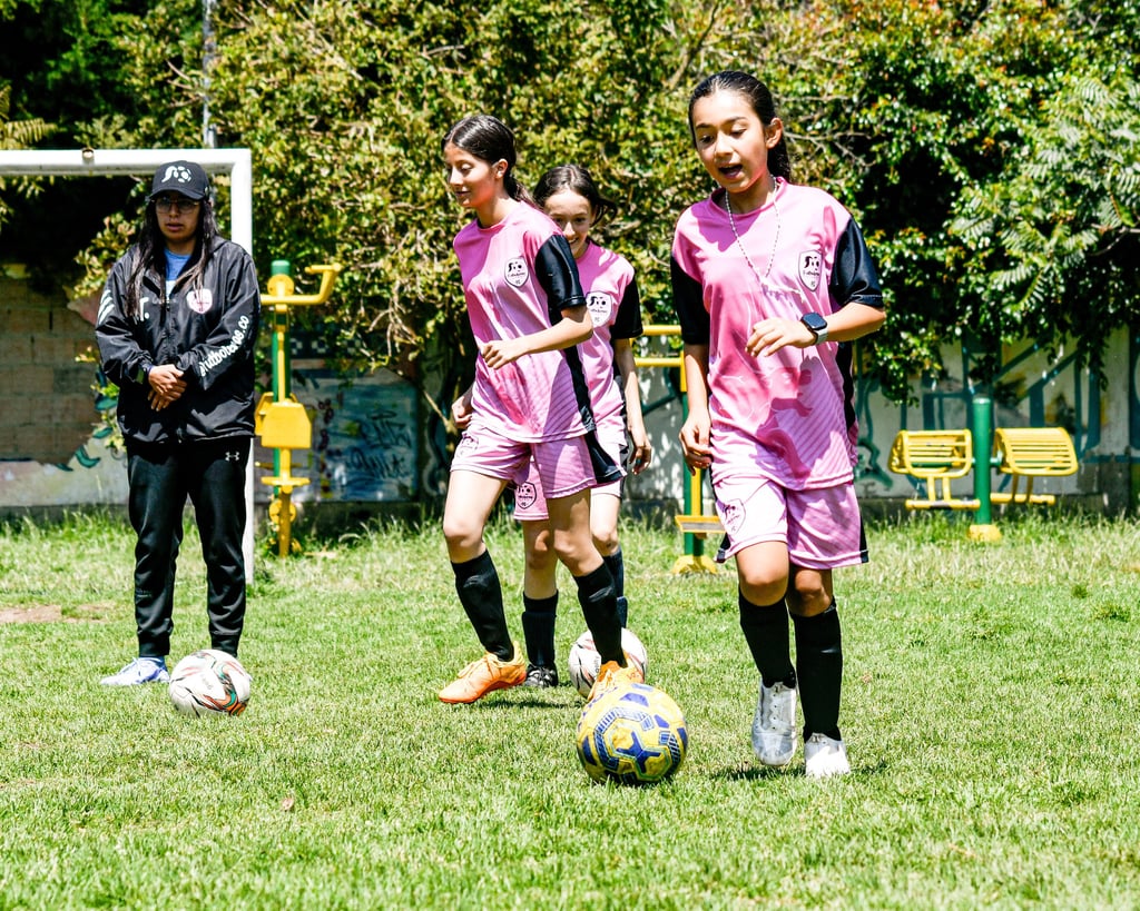 Nos enfocamos en el fortalecimiento de la técnica individual, como la conducción, el control del balón, el pase, y el golpeo. Es aprender a tener confianza con la pelota en los pies para que seamos seguras cuando juguemos.