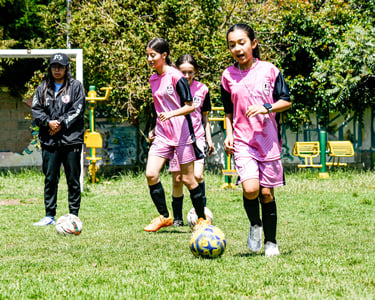 En la cancha no solo jugamos fútbol, también compartimos, trabajamos en equipo y nos apoyamos entre todas. Aquí le damos valor a la confianza, el respeto, la disciplina y el manejo de emociones. Es aprender a levantarnos cuando perdemos y a celebrar juntas cuando ganamos.